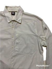 PLEASE READ DESCRIPTION CAREFULLY BEFORE BUYING NIKE ACG SHIRT 24"X 29" ACTUAL SIZE MEASUREMENT(approximately) : ARMPIT TO ARMPIT: 24 INC BACK COLLAR TO HEM: 29 INC PICTURE AND DETAILS OFFER THE PRICE OF MY BOSS WE ARE NEGOTIATING SHIPPING 1. The shipping cost is USD 20 via Malaysian Registered Postage. All items will be shipped within 2-4 business day after receiving cleared payment. It will take 2-4 weeks or more for delivery, depends on your custom checking. OR 2. Add USD 10 for speedy delivery via DHL Express Service. It will take 4-9 Working DAYS to deliver. More safe!! Etc: During shipping,we always stated low value than the original price for " CUSTOMS DECLARATION" to avoid taxes on buyers and we are not responsible if its eventually happen. All Items are Sold "AS IT IS" so Please be Sure to Read The Entire Description and Look at All The Pictures. Any Question and More Details Please Don't Hesitate to Contact Me. CONDITION :- An item that has been used or worn previously. Please don't expect it to be like new or in pristine condition GREAT VINTAGE CONDITION (USED CLOTHING) ATTENTION : Please pay close attention to measurements provided. Do not rely on tag size as pre-worn items may have been altered, stretched or shrunk & vintage sizes do not directly translate the modern sizes. The best way to ensure a correct fit is to compare our measurements with the measurements of a similar item that you know fits you well. Please enlarge the photos for clearer image. ** All sales are FINAL. No returns, exchange or refunds. Thank you so much for your visit