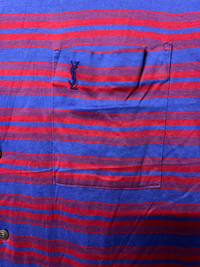 PLEASE READ DESCRIPTION CAREFULLY BEFORE BUYING YSL SHIRT ACTUAL SIZE MEASUREMENT(approximately) : ARMPIT TO ARMPIT: 20.5 INC BACK COLLAR TO HEM: 29.5 INC TAG : CONDITION :8/10 PICTURE AND DETAILS OFFER THE PRICE OF MY BOSS WE ARE NEGOTIATING SHIPPING 1. The shipping cost is USD 20 via Malaysian Registered Postage. All items will be shipped within 2-4 business day after receiving cleared payment. It will take 2-4 weeks or more for delivery, depends on your custom checking. OR 2. Add USD 10 for speedy delivery via DHL Express Service. It will take 4-9 Working DAYS to deliver. More safe!! Etc: During shipping,we always stated low value than the original price for " CUSTOMS DECLARATION" to avoid taxes on buyers and we are not responsible if its eventually happen. All Items are Sold "AS IT IS" so Please be Sure to Read The Entire Description and Look at All The Pictures. Any Question and More Details Please Don't Hesitate to Contact Me. CONDITION :- An item that has been used or worn previously. Please don't expect it to be like new or in pristine condition GREAT VINTAGE CONDITION (USED CLOTHING) ATTENTION : Please pay close attention to measurements provided. Do not rely on tag size as pre-worn items may have been altered, stretched or shrunk & vintage sizes do not directly translate the modern sizes. The best way to ensure a correct fit is to compare our measurements with the measurements of a similar item that you know fits you well. Please enlarge the photos for clearer image. ** All sales are FINAL. No returns, exchange or refunds. Thank you so much for your visit ◦