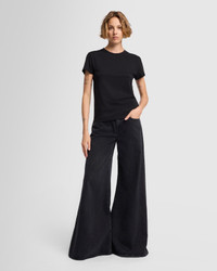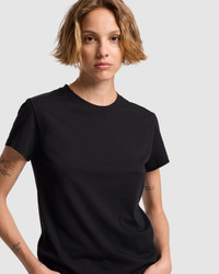 Fits like: A slightly relaxed, full-length T-shirt. Feels like: A soft, breathable cotton-blend with stretch to it. The Details: - Classic black - Traditional T-shirt silhouette - lightweight and breathable