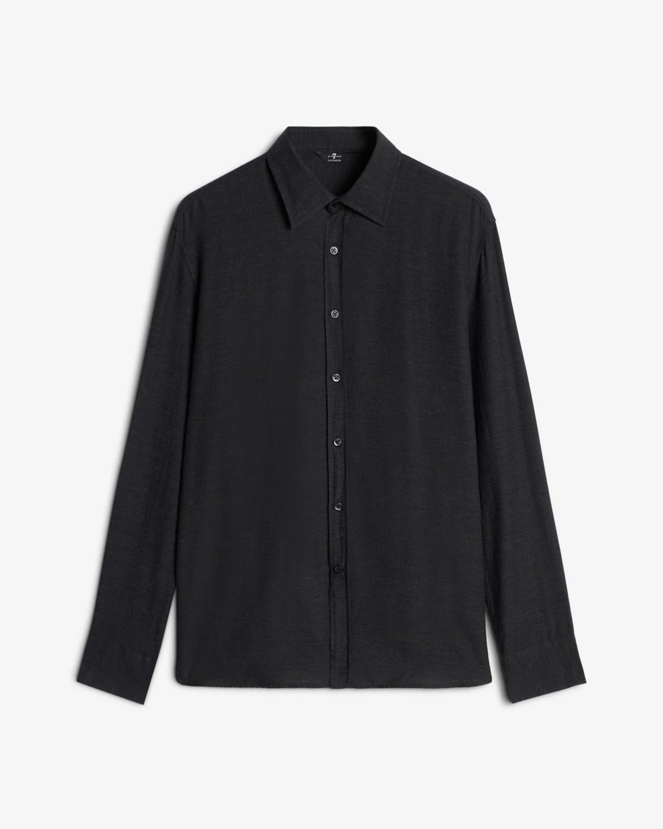 Cotton-Cashmere Button Up Shirt in Dark Grey