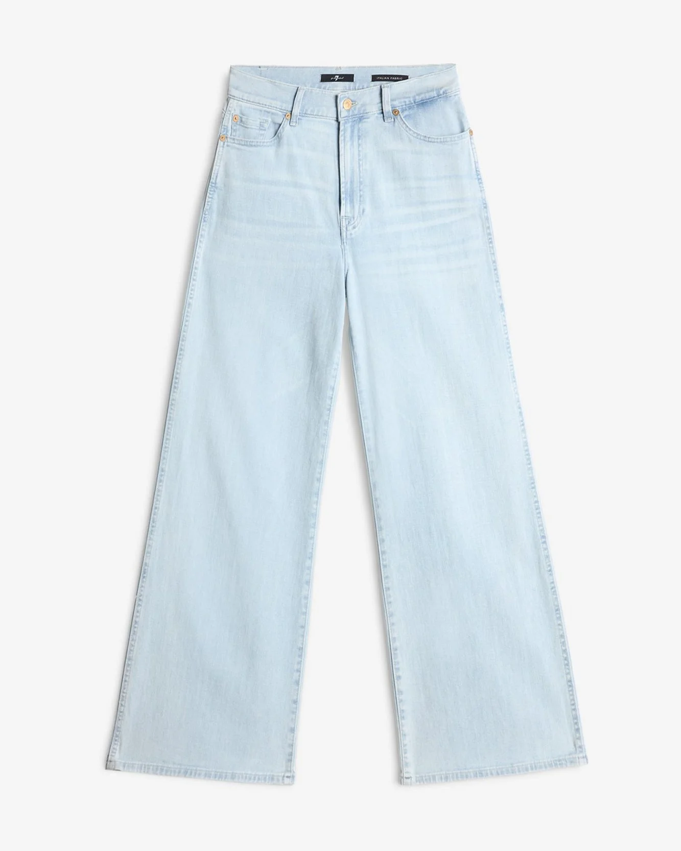 Fits like: A high-rise wide-leg fit that accentuates the waist and flows effortlessly through the legs with a chic, cropped length. Feels like: A vintage-inspired essential, crafted for that classic denim texture with a soft, broken-in feel that gets better with every wear. The Details: - Light wash - Tonal back pocket squiggle embroidery - Zip fly with button closure MEASUREMENTS - Based on size 27 - Rise: 10.75" - Approx Inseam: 34" - Leg Opening: 24.25" - Measurements may vary based on size, fabric, and wash. FABRIC & CARE - 92% Cotton, 6% Elastomultiester, 2% Elastane - Machine wash cold inside out with like colors, lay flat to dry - Imported