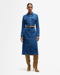 Fits like: Tailored through the bodice, skimming the waist with a softly structured A-line skirt. Refined and elongating in all the right ways. Feels like: Gentle on the skin with a soft hand and breathable feel, this fabric moves easily and wears light. The Details: - Dark wash - Full-length snap front for easy polish - Defined waist with a subtle, built-in belt effect - Long sleeves with button cuffs - Flap chest pockets and contrast topstitching FABRIC & CARE - 92% Cotton, 6% Elastomultiester, 2% Elastane - Machine wash cold inside out with like colors, lay flat to dry - Imported