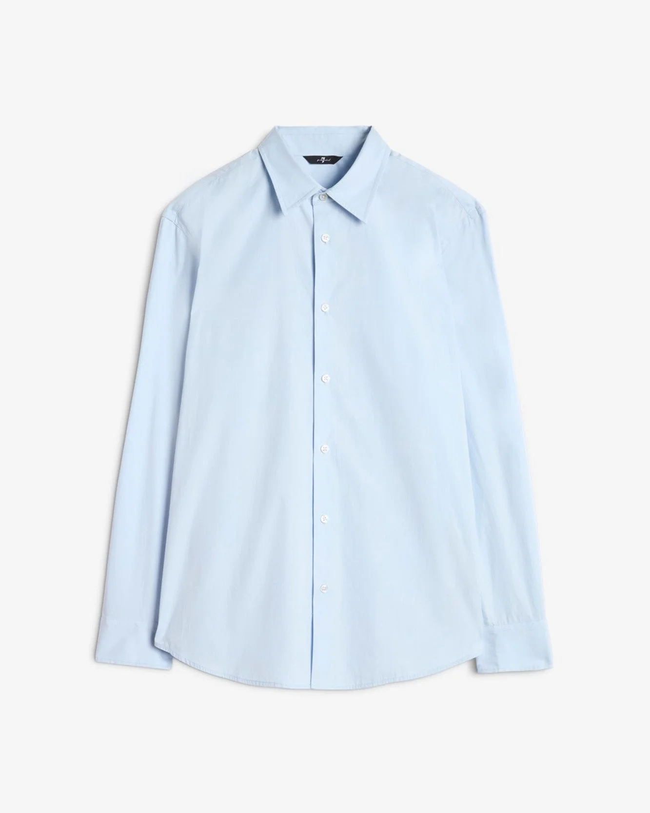 Fits like: A refined tailored fit with just enough room to layer comfortably. Feels like: Silky-smooth fabric with crisp yet breathable texture. The Details: - 100% cotton - Button-up front with a classic point collar - Long SleeveSky blue hue FABRIC & CARE - 100% Cotton - Machine wash cold inside out with like colors, lay flat to dry Imported