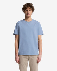 Fits like: Tailored fit that flatters your shape without feeling tight. Feels like: Airy, plush cotton with an ultra-soft touch and a hint of stretch for effortless movement and comfort. The Details: - Classic crew neck - Short Sleeve - A muted blue that adds subtle sophistication MEASUREMENTS - Based on size Medium - Length: 28" - Chest: 42.5" - Sweep: 41.75" - Measurements may vary based on size, fabric, and wash. FABRIC & CARE - 91% Cotton, 9% Elastane - Machine wash cold inside out with like colors, lay flat to dry Imported