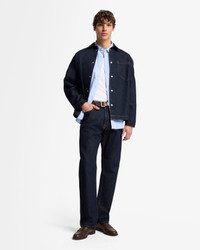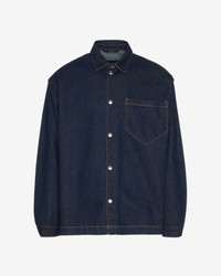 Fits like: Boxy and structured with room to layer—tailored to sit just right, whether buttoned up or thrown on loose. Feels like: Rigid denim that holds its shape while evolving into a softer, more lived-in fit over time. The Details: - Medium indigo wash - Pointed Collar - Relaxed fit silhouette - Snap button closure - Single chest pocket - Contrast stitching FABRIC & CARE - 100% Cotton - Machine wash cold inside out with like colors, lay flat to dry - Imported