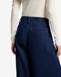 Fits like: A high rise, wide leg trouser that falls with ease, complemented by front pleats for a clean, sophisticated feel. Feels like: Rigid at first, softening beautifully with every wear for that lived-in feel. The Details: - Dark Wash - High rise - Front side slit pockets - Zip fly with button closure - Welted back pocket FABRIC & CARE - 100% Cotton - Machine wash cold inside out with like colors, lay flat to dry - Imported