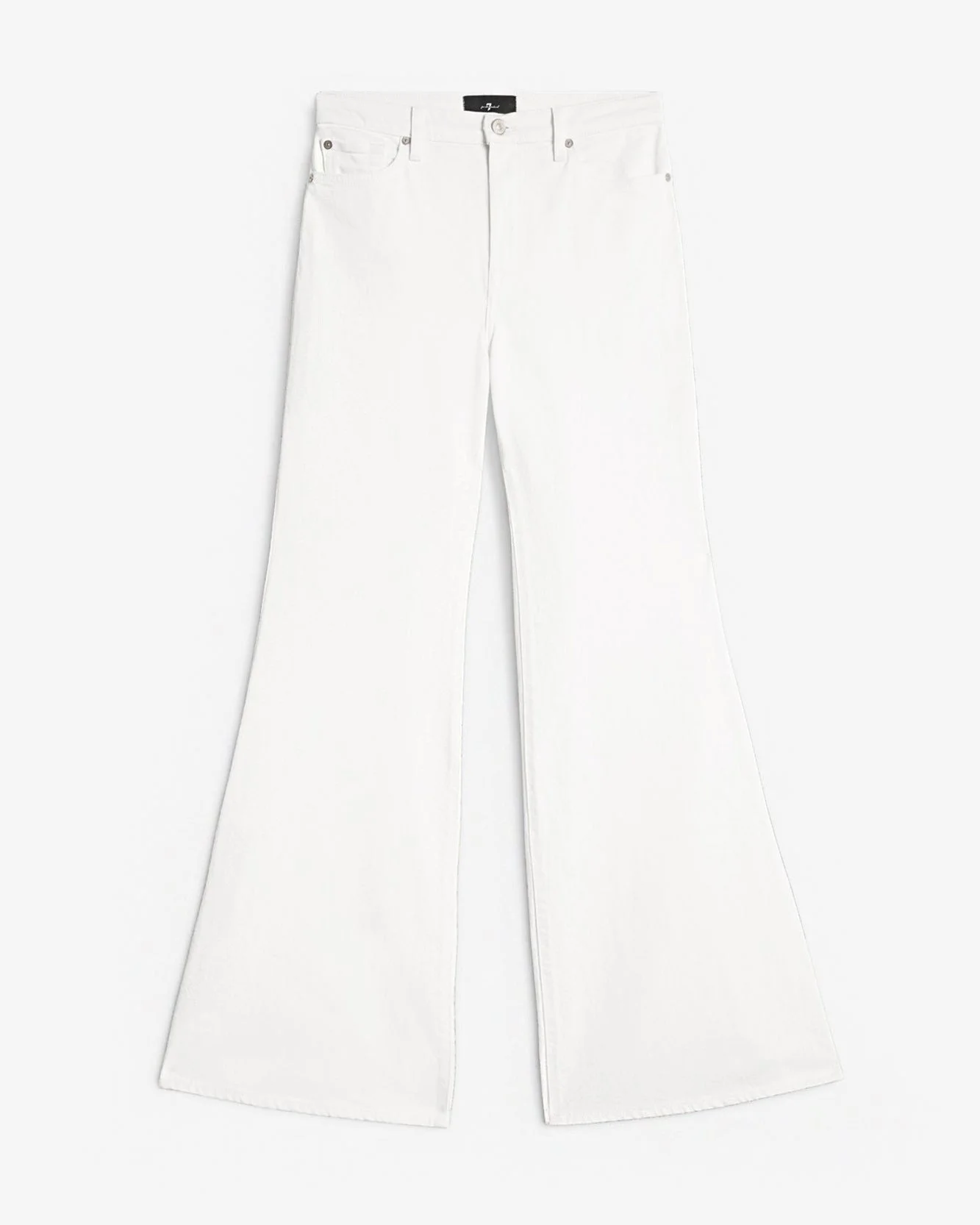 Fits like: A high rise fit that hugs through the hips and thighs before breaking into a bold, full-length flare for a vintage-inspired silhouette. Feels like: Rigid denim that holds its shape while evolving into a softer, more lived-in fit over time. The Details: - White denim - Zip fly with button closure MEASUREMENTS - Based on size: 27 - Rise: 10.75" - Leg Opening: 27.5" - Approx. Inseam: 34" - Measurements may vary based on size, fabric and wash FABRIC & CARE - 99% Cotton, 1% Elastane - Machine wash cold inside out with like colors, lay flat to dry - Imported