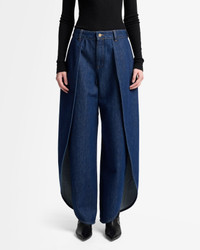 Fits like: A high rise silhouette that opens into a wide leg from hip to hem, creating a long, relaxed line with plenty of room to move. Feels like: Denim with a structured feel that becomes more relaxed with every wear. The Details: - Mid Wash - Tulip overlay seam for a petal-like effect - Zip fly with button closure - Clean back pocket FABRIC & CARE - 100% Cotton - Machine wash cold inside out with like colors, lay flat to dry - Imported