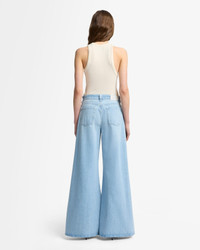 Fits like: High-waisted with a dramatic wide leg and patch pocket details — a modern twist on '70s-inspired style. Feels like: Rigid denim that holds its shape while evolving into a softer, more lived-in fit over time. The Details: - Light Indigo Wash - Light whiskering and sanding along the hips and legs - Zip fly with button closure - Clean back pocket MEASUREMENTS - Based on size: 27 - Rise: 10.87" - Leg Opening: 38.5" - Approx. Inseam: 33" - Measurements may vary based on size, fabric, and wash. FABRIC & CARE - 100% Cotton - Machine wash cold inside out with like colors, lay flat to dry - Imported
