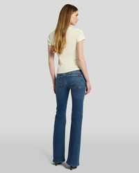 Our iconic low-rise original bootcut continues to be a fan favorite. Crafted from premium stretch denim for all-day comfort, this is a women's jean that is elevated and cool. This dark wash version is detailed with heavy fading, whiskering, a slim fit through the thighs, and a bootcut flare at the hem to create a flattering and elongating silhouette. For a shorter inseam, shop the Tailorless Original Bootcut in New York Dark MEASUREMENTS - Based on size 27 - Rise: 8” - Approx Inseam: 34.5” - Leg Opening: 18” - Measurements may vary based on size, fabric, and wash." FABRIC & CARE - 99% Cotton, 1% Elastane - Machine wash cold inside out with like colors, lay flat to dry - Made from imported fabric