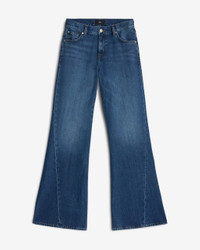 Fits like: A mid-rise flare with a full-length silhouette that hugs through the hips and thighs before flaring out at the knees for a retro-inspired, leg-lengthening effect. The twisted seam detail adds a modern, elevated touch. Feels like: Classic rigid denim—structured and durable, designed to hold its shape while softening over time for that authentic, vintage feel. The Details: - Medium wash - Twisted seam detail for a unique, standout finish - Zip fly with button closure MEASUREMENTS - Based on size 27 - Rise: 9.75" - Approx Inseam: 34" - Leg Opening: 24.5" - Measurements may vary based on size, fabric, and wash. FABRIC & CARE - 100% Cotton - Machine wash cold inside out with like colors, lay flat to dry - Imported