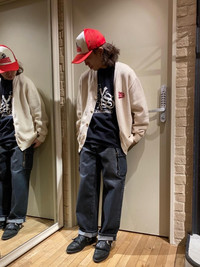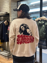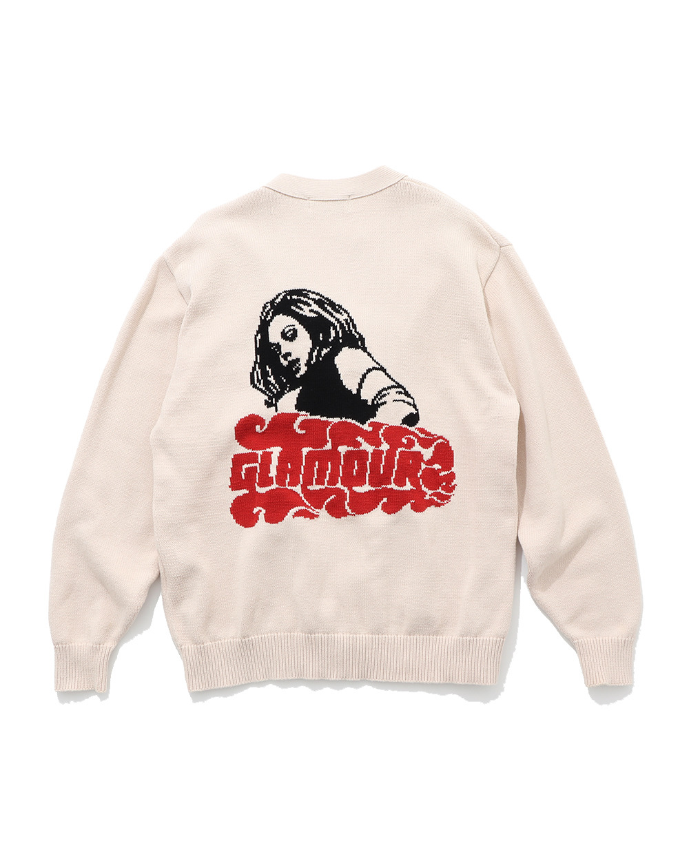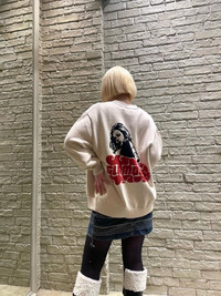 VIXEN GIRL KNITTED CARDIGAN 데일리로 사용할 수 있는 기본 가디건이지만 임팩트 있는 VIXEN GIRL을 대담하게 배치한 디자인입니다. 코튼 니트는 통기성과 흡습성이 뛰어나기 때문에 오랜 시즌 착용 가능한 아이템입니다. 깔끔한 실루엣의 비밀은 뜨개질 방법에 있습니다. 통상, 복수의 색을 사용해 짜면 실이 부피가 커지고 무거워져 버리지만 실을 바꾸어 엮음으로써, 샤프하고 아름다운 실루엣을 실현한 제품입니다. 23년도 제품으로 발매가 ¥44,000, 약간의 사용감이 존재합니다. L : 어깨 51 / 가슴 58 / 소매 63 / 총장 69 (연남점에 입고된 제품입니다.)