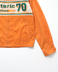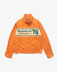 HYSTERIC GLAMOUR women's 80s swing topCOMMENT HYSTERIC GLAMOUR의 women's 80s swing top입니다. Made in Japan, 보기 드문 1980년대 아카이브의 스윙톱입니다. 오렌지의 색조에 가슴의 임팩트 있는 'HYSTERIC 70 CUSTOM'의 로고의 디자인이 특징인 제품으로, 코튼 나일론 혼방의 홑 겹 제품으로 지금 분위기에 딱 좋은 제품입니다. 약간의 사용감이 존재합니다. MATERIAL(%) cotton 75 nylon 25 SIZE(cm) FREE : 어깨 43 / 가슴 50.5 / 소매 59 / 총장 58 * 재는 방식에 따라 1~2cm의 오차가 있을 수 있습니다.