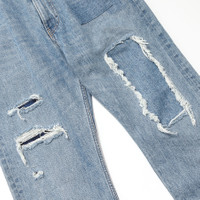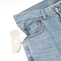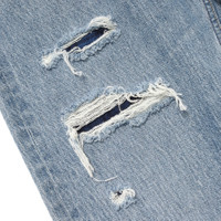 BEAMS repaired 5 pocket denim pants COMMENT BEAMS의 repaired 5 pocket denim pants입니다. 다양한 방식의 리페어 가공을 해, 현대적인 핏을 완성한 5포켓 데님입니다. 빈티지한 무드의 유즈드 가공을 한 바디에 데미지 가공, 덧댐 등이 추가된 제품입니다. 오른쪽 허벅지 덧댐 부분에는 인디고 체크 원단이 사용되었습니다. 덧댐에 사용된 데님은 채도나 밸런스가 잘 맞아서 어색해 보이지 않습니다. 실루엣은 느슨하게 테이퍼드가 걸린 슬림 스트레이트 핏입니다. 택포함 새제품입니다. MATERIAL(%) cotton 100 SIZE(cm) M : 허리 40 / 밑위 28 / 허벅지 29 / 밑단 20 / 총장 102.5 * 재는 방식에 따라 1~2cm의 오차가 있을 수 있습니다.