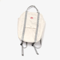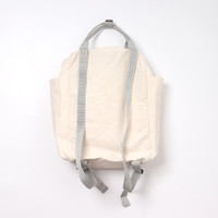 DANTON 2way utility bag COMMENT DANTON의 utility bag입니다. 튼한 코튼 캔버스 소재를 사용한 2way 가방입니다. 배낭 또는 토트백, 2way로 사용할 수 있습니다. 양쪽에 500ml의 페트병이 들어갈 정도의 깊은 포켓, 전면에는 소품의 수납에 편리한 스냅 버튼도 있습니다 전면과 손잡이 잠금부분 로고가 포인트입니다. 메인 포켓은 지퍼로 열고 내부 포켓이없고 심플하기 때문에 공간이 넓습니다. 컴팩트한 제품인만큼 데일리, 야외 및 여행에도 활약합니다. 사용감이 다소 존재합니다. MATERIAL(%) cotton 100 SIZE(cm) ONE SIZE : 가로 26 / 세로 37 / 폭 14 * 재는 방식에 따라 1~2cm의 오차가 있을 수 있습니다.