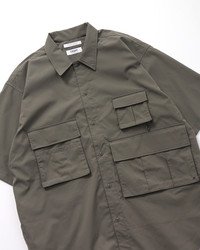 JOURNAL STANDARD의 multi pocket shirt입니다. JOURNAL STANDARD 스테디셀러인 'LASKA' 시리즈의, 본격적인 필드 아이템입니다. 캠핑 등의 액티브한 용도에도 최적인 균형있게 배치된 멀티 포켓이 특징적인 숏 슬리브 셔츠입니다. 실루엣은 오버사이즈로 여유롭게 착용하실 수 있습니다. 수납력이 뛰어난 디자인으로, 캠핑 등 액티브한 장소는 물론, 외출복으로도 활약하는 아이템입니다. 양호한 컨디션 유지중입니다. M : 어깨 57 / 가슴 66 / 소매 29 / 총장 77