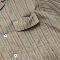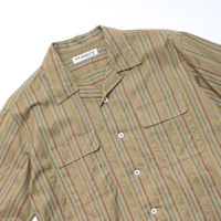 JOURNAL STANDARD TRISECT2 jacquard open collar shirt COMMENT JOURNAL STANDARD TRISECT2의 jacquard open collar shirt입니다. 독특한 스트라이프 패턴, 요철감이 있는 자카드 원단으로 된 오픈 칼라 셔츠입니다. 시원한 터치감, 약간의 광택이 있는 코튼 소재이며 같은 계열의 톤으로 고급스럽게 짜낸 소재입니다. 가슴 2개의 포켓, 사이드 슬릿 등 디테일이 특징입니다. 약간의 사용감이 존재합니다. MATERIAL(%) cotton SIZE(cm) L : 어깨 50.5 / 가슴 57 / 소매 25 / 총장 70 * 재는 방식에 따라 1~2cm의 오차가 있을 수 있습니다.