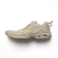 MIZUNO × BEAMS wave rider 10 COMMENT MIZUNO × BEAMS wave rider 10입니다. 디자인 전반에 걸쳐 하이킹과 레트로 러닝 디자인 요소를 결합하여 실용적인 미학을 채택했습니다. 밝은 오렌지 포인트의 올오버 회갈색은 세련된 옵션을 제공하며 도시의 세련미와 아웃도어, 밀리터리에서 영감을 받은 분위기 사이에서 불가능해 보이는 균형을 유지합니다. 갑피의 밀리터리 등급 나일론 및 가죽 사양이며 BEAMS 시그니처 컬러를 적용하여 오프톤 타우페 컬러로 렌더링되었습니다. 약간의 사용감이 존재합니다. MATERIAL(%) other SIZE(cm) JP27.5 * 재는 방식에 따라 1~2cm의 오차가 있을 수 있습니다.