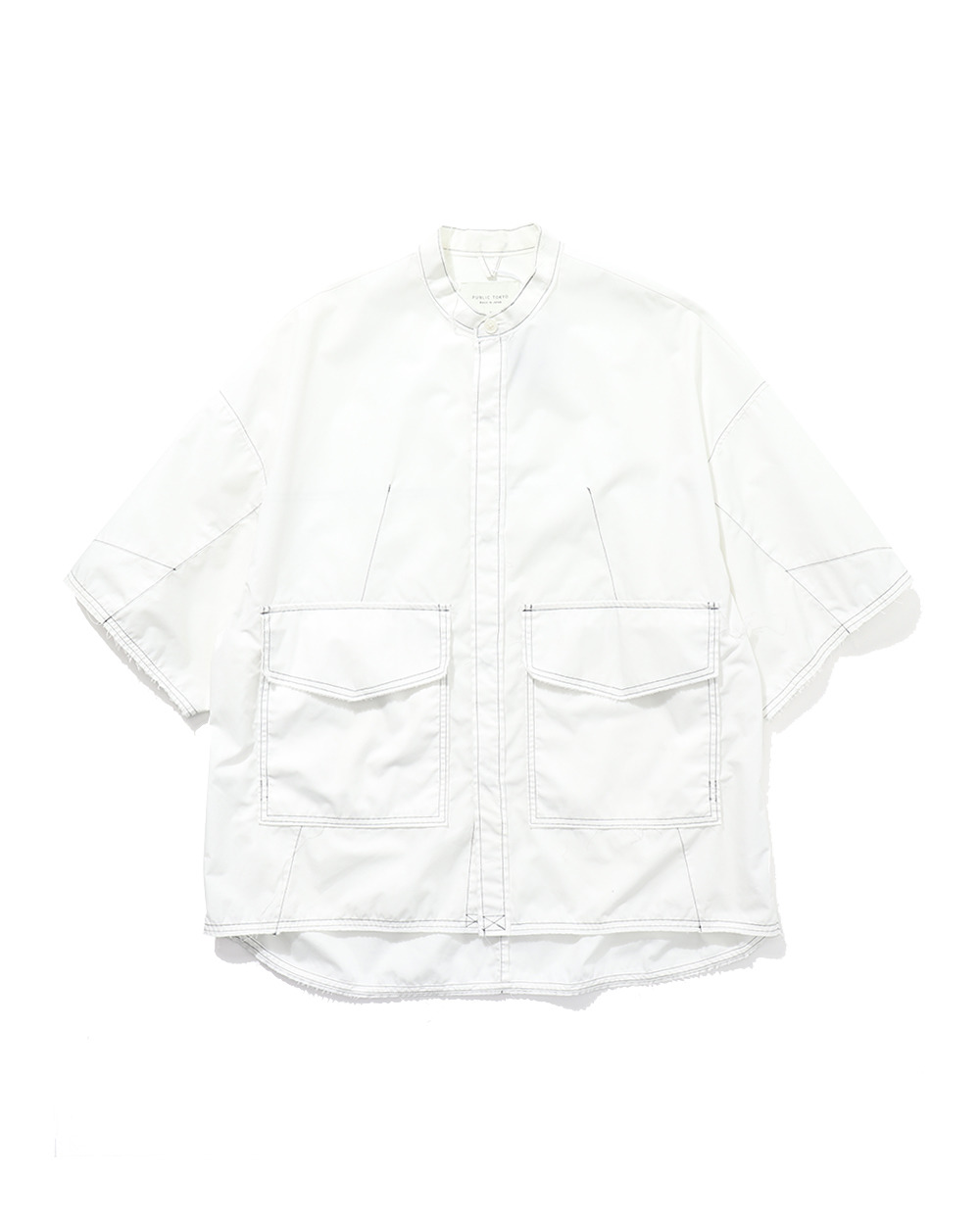 "FROM JAPAN TO THE WORLD, ALL MADE IN JAPAN"을 모토로 일본의 전통적인 기술을 이용해 도쿄의 날카로운 감성으로 만들어 내는 캐주얼 브랜드 PUBLIC TOKYO의 military stitch no collar shirt입니다. 재단 마감으로 존재감이 있는 고집스러운 셔츠 아우터입니다. 위에서도 옆에서도 접근할 수 있는 사양의 포켓으로, 여름철 외출에 일조합니다. 약간 광택감이 있고 박음질이 좋은 65/35 평직 소재로 착용, 세탁할수록 소재에 맛이 나고 감촉이 더해집니다. 탄력이 있기 때문에 실루엣도 입체적으로 예쁘게 나옵니다. 약간의 사용감이 존재합니다. 1 : 어깨 65 / 가슴 65 / 소매 25.5 / 총장 80