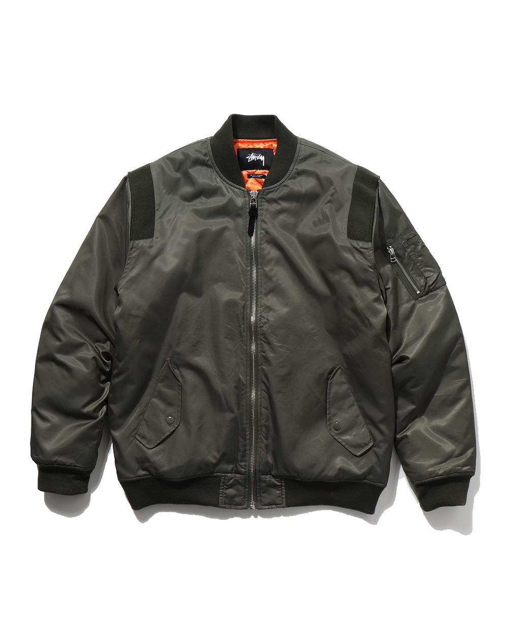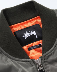 Quilted MA-1 jacket 퀼티드 안감이 특징인 MA-1 재킷입니다. 어깨 부분 밴딩 디테일이 특징이며, 일반 항공점퍼보다 타운용으로 적합하도록 기장감이 길게 설정된 점이 특징입니다. 이외에 시가렛 포켓, 지퍼 등은 빈티지 디테일을 답습하고 있습니다. 약간의 사용감이 존재합니다. L : 어깨 55 / 가슴 63 / 소매 68 / 총장 76