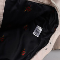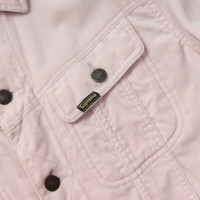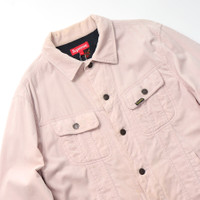 Supreme Velvet Trucker JacketCOMMENT Supreme의 Velvet Trucker Jacket입니다. 코튼 벨벳의 트러커 재킷에 새틴 라이닝을 더한 재킷입니다. Lee의 데님 트러커를 베이스로한 제품이며 너무 쨍하지 않은 더스티 핑크 컬러입니다. 라이너에는 하트에 크로스가 꽂힌 모티프 Sacred heart가 프린트 되어 있습니다. 약간의 사용감이 존재합니다. MATERIAL(%) cotton 100 SIZE(cm) L : 어깨 49 / 가슴 57 / 소매 62 / 총장 66 * 재는 방식에 따라 1~2cm의 오차가 있을 수 있습니다.