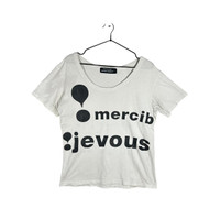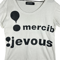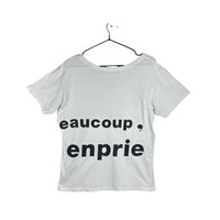 mercibeaucoup jevous enprie! tee chest: 49 cm shoulders: 48 cm length: 56 cm sleeve: 18 cm tag: 1 gray stain on right sleeve cracked print