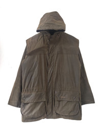 BARBOUR A873 CLASSIC DURHAM JACKET SIZE ON TAG : - MANUAL MEASUREMENT ARMPIT 22.5 INCHES LENGHT BACK COLLAR TO BOTTOM 31.5 INCHES SLEEVES 23.5 INCHES MADE IN ENGLAND GOOD USED CONDITION 7/10 *REF. ITEM : G