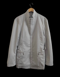 Ref. Item : #F GAULTIER HOMME OBJET BUCKLE SIDE LIGHT JACKET SIZE ON TAG : 48 MANUAL MEASUREMENT ARMPIT 21 INCHES LENGHT BACK COLLAR TO BOTTOM 29.5 INCHES SLEEVES 24.5 INCHES CONDITION : GENTLY USED NOTED : GOT SOME STAINS AT CERTAIN PART, PLEASE REFER PICTURE FOR MORE DETAIL.
