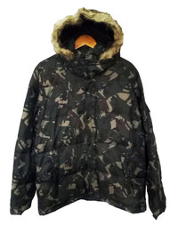 UNIQLO CAMOUFLAGE PUFFER FUR JACKET SIZE ON TAG : XL Fit To Large MANUAL MEASUREMENT ARMPIT 24.5 INCHES LENGHT 29 INCHES GOOD USED CONDITION 8/10