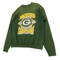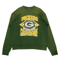 Description Celebrate Packers history with this authentic vintage 1995 Green Bay Packers NFC Central Division Champions sweatshirt. This piece captures the grit and glory of the mid-90s era, featuring high-quality screen-printed graphics on a classic forest green colorway. Product Details: • Designer/Brand: Fruit of the Loom (Heavy Cotton line) • Era: 1995 (Dated on the graphic: TM/© 1995 NFLP) • Origin: Made in the USA • Material: Heavyweight blend (88% Cotton / 12% Polyester) • Condition: Excellent vintage condition. The graphic shows a beautiful "crackled" patina consistent with age, giving it a true retro aesthetic. The fabric is thick, soft, and maintains a great structured fit. Graphic Features: • Large "G" helmet logo in the center. • "NFC Central Division Champions" commemorative text. • Bold yellow and white typography with "Packers" and "National Football League" accents. Measurements (Laid Flat): • Pit to Pit (P): 24 inches • Length (L): 30 inches (Top of shoulder to bottom hem) • Shoulder to Shoulder (S): 25 inches • Sleeve Length (SL): 26 inches Note: This is a vintage item. Please review the measurements carefully to ensure a perfect fit, as vintage sizing can differ from modern standards. SKU : MIX46