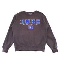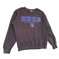 About the Designer Colosseum Athletics is a licensed manufacturer of collegiate apparel, creating clothing for fans of various NCAA teams, including the Duke Blue Devils. Their apparel focuses on comfortable, spirited designs for game-day or everyday wear. This specific piece is a great example of a classic, officially licensed fan item. Description Show your team pride with this authentic Vintage Duke Blue Devils Crewneck Sweatshirt by Colosseum Athletics. This comfortable, midweight pullover features the classic Duke logo—the bold "DUKE" wordmark above "BLUE DEVILS" and the iconic Blue Devil mascot embroidered on the front. The subtle charcoal/brown heathered color gives it a great vintage, washed look, making it a stylish piece of fan gear. It's a cozy essential for any Duke fan, perfect for chilly game nights or adding a retro vibe to your casual wardrobe. The material is a soft cotton/polyester blend for comfort and durability. • Team: Duke Blue Devils • Manufacturer: Colosseum Athletics • Color: Brown/Charcoal Gray (with blue and white embroidery) • Style: Crewneck Pullover Sweatshirt • Graphics: Embroidered "DUKE BLUE DEVILS" and Blue Devil mascot logo. • Care: Machine wash (per tag: Hand wash smoothly or machine wash separately, cool water, non-chlorine bleach, tumble dry low or hang dry, cool iron, keep iron off design). • Material: 80\% \text{ Cotton}/20\% \text{ Polyester} Etsy Size & Measurements • Tagged Size: S (Small) • P2P (Pit to Pit): 23.5 inches • Length (Top of Shoulder to Hem): 25 inches • Shoulder (Shoulder Seam to Seam): 22 inches • Sleeve Length (Shoulder Seam to Cuff): 23 inches Note: Please compare the provided measurements (P2P, Length, etc.) to a favorite garment you own to ensure the perfect fit, as vintage sizing can vary. SKU : MIX44