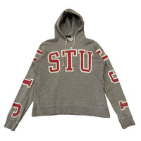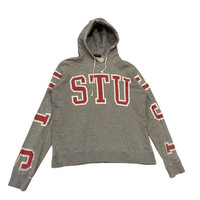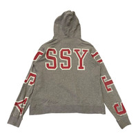About the Designer Founded in the early 1980s by Shawn Stüssy, Stüssy redefined the intersection of surf culture and hip-hop, effectively birthed the concept of "streetwear." The Stüssy Women line (seen on the neck tag) specifically caters to a more tailored, feminine fit while maintaining the brand's gritty, Californian underground roots. Pieces from this line, especially with collegiate varsity styling, are highly sought after by collectors of 90s and Y2K aesthetic fashion. Description Level up your street style with this authentic Vintage Stüssy Women hoodie. This piece features a bold, wrap-around collegiate "STÜSSY" arch logo in a vibrant red with a white outline, giving it a classic varsity feel. The hoodie is crafted from a comfortable heather grey French terry cotton. It has a relaxed yet slightly cropped vintage silhouette typical of the Women's line. • Condition: Good vintage condition. Shows "perfect" wear including minor distressing/fraying on the cuffs and some light cracking on the graphic, adding to its authentic vintage character. • Colorway: Heather Grey with Red/White Varsity Graphics. • Features: Drawstring hood, ribbed cuffs and hem, wrap-around sleeve graphics. • Authenticity: Includes original "Stüssy Women" neck tag and internal gold-thread logo labels. Measurements To ensure a perfect fit, please compare these measurements to a garment you already own: Pit to Pit (Chest) 21inches Length (Shoulder to Hem) 24.5” Shoulder to Shoulder 17.4” Sleeve Length 24.5” SKU : MIX47