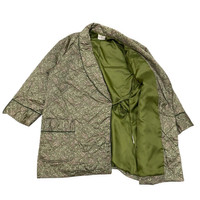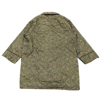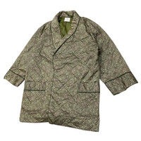 About the Designer Valentino Garavani is the legendary founder of the Italian fashion house Valentino, known for redefining luxury, elegance, and high-fashion craftsmanship since 1960. The "Valentino Garavani Body" line, produced under license (in this case by the renowned Japanese textile company Renown), focused on elevated loungewear and intimate apparel, bringing the brand's signature sophistication into the home with high-quality fabrics and timeless patterns. Description Experience luxury lounging with this authentic vintage Valentino Garavani Body quilted robe. This piece features a rich, intricate paisley pattern in earth tones set against a beautiful olive green base. Constructed with a quilted exterior and a smooth satin-like lining, this robe offers both warmth and a structured, elegant silhouette. It is finished with dark green piping along the collar, cuffs, and pockets, showcasing the attention to detail expected from the House of Valentino. • Brand: Valentino Garavani (Body Line) • Era: Vintage (Produced by Renown Inc.) • Pattern: Classic Paisley • Features: Quilted construction, two front patch pockets, interior waist tie, piping detail. • Material: 100% Cotton Outer / 100% Polyester Lining & Padding. • Condition: Excellent vintage condition. Measurements (Laid Flat) • Pit to Pit (P): 23.5 inches • Length (L): 32.5 inches • Sleeve Length (SL): 26 inches (from neck/shoulder seam to cuff) • Tag Size: M SKU : MIX46