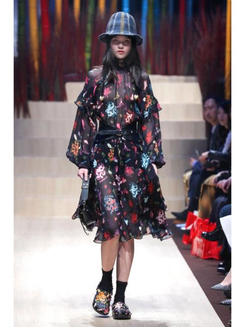 Vivienne Tam F/W’19 Graffiti Dragon High Collar Silk Dress