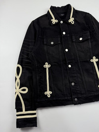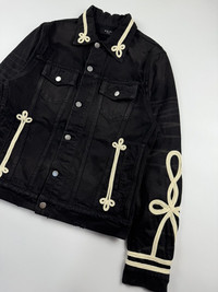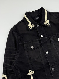 Amiri Roping Embroidered Denim Trucker Jacket Sz Medium 9/10 Condition Width: 21 Length: 25 Shoulder: 17 Sleeve: 27 Measured it by inches Accepting offers No return No exchange Ask before buy