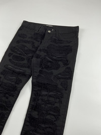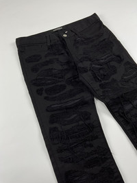Junya Watanabe Distressed Denim Sz Medium fits 32 Check measurements 9/10 Condition Waist: 16 Inseam: 24.5 Leg Opening: 6.5 Front Rise: 9 Thigh: 10.5 Knee: 8 Measured it by inches Accepting offers No return No exchange Ask before buy