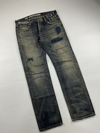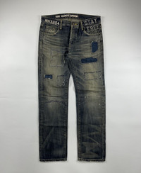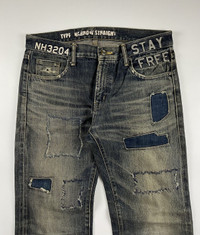 Neighborhood S/S'10 Savage Level 4 The Magnificent Seven Sz Medium fits 34 Check measurements 9/10 Condition Waist: 17 Inseam: 31 Leg Opening: 8 Front Rise: 10 Thigh: 11.5 Knee: 9 Measured it by inches Accepting offers No return No exchange Ask before buy