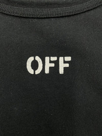 Off White Spray Diagonal Shirt Sz Small fits Large Check measurements 9/10 Condition Width: 21.5 Length: 28 Shoulder: 18 Sleeve: 7.5 Measured it by inches Accepting offers No return No exchange Ask before buy