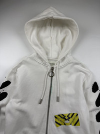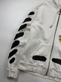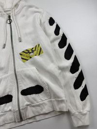 Off White Spray Paint Diagonal Zip Hoodie Sz Medium 8/10 Condition Stain Issue Width: 19.5 Length: 25.5 Shoulder: 18.5 Sleeve: 26.5 Measured it by inches Accepting offers No return No exchange Ask before buy