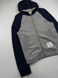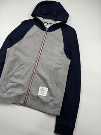 Thom Browne Zip Hoodie Sz 2 fits Small Check measurements 8/10 Condition Width: 18.5 Length: 24.5 Measured it by inches Accepting offers No return No exchange Ask before buy