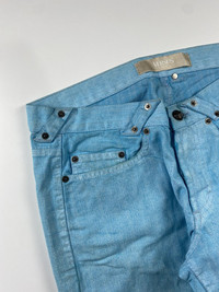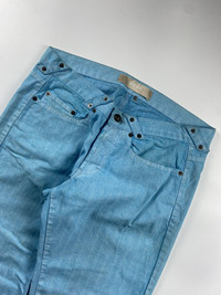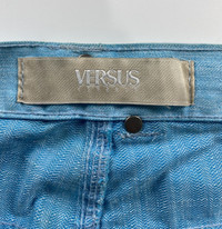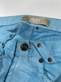 Versace Versus Wax Coated Denim Pants fits 34 Check measurements 9/10 Condition Waist: 17 Inseam: 28.5 Leg Opening: 8 Front Rise: 8.5 Thigh: 12 Knee: 9.5 Total Length: 37.5 Accepting offers No return No exchange Ask before buy