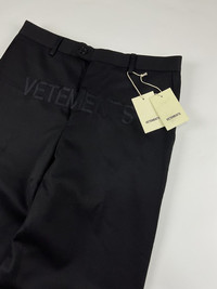 Vetements F/W'17 Crotch Logo Wool Trouser Sz Small fits 30 Check measurements Waist: 15.5 Inseam: 30.5 Leg Opening: 8.5 Front Rise: 12 Thigh: 12.5 Knee: 10 Measured it by inches Accepting offers No return No exchange Ask before buy