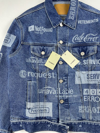 Vetements F/W'19 Error-Print Denim Jacket Sz Medium Width: 24.5 Length: 26 Shoulder: 19.5 Sleeve: 25 Measured it by inches Accepting offers No return No exchange Ask before buy