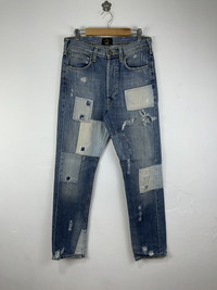 Vivienne Westwood x Lee S/S'11 Distressed Patchwork Low Crotch Jean Sz 28 9/10 Condition Waist: 15 Inseam: 30 Leg Opening: 6.7 Front Rise: 11.5 Thigh: 11 Knee: 9.5 Measured it by inches Accepting offers No return No exchange Ask before buy