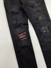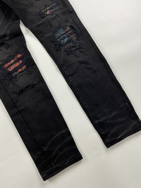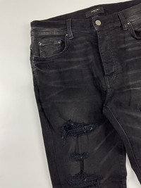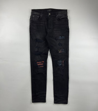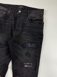 Amiri MX1 Vintage Tee Animation Patch Jeans Sz 33 9/10 Condition Waist: 16.5 Inseam: 31.5 Leg Opening: 6 Front Rise: 10.7 Thigh: 11 Knee: 8 Measured it by inches Accepting offers No return No exchange Ask before buy