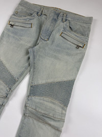Balmain Biker Jeans Sz 30 9/10 Condition Waist: 17.5 Inseam: 33.5 Leg Opening: 6.5 Front Rise: 10 Thigh: 11 Knee: 7.5 Measured it by inches Accepting offers No return No exchange Ask before buy