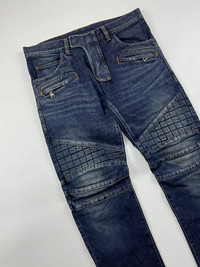 Balmain Biker Pants Sz 30 fits 32-34 Check measurements 9/10 Condition Waist: 17 Inseam: 29.5 Leg Opening: 6.5 Front Rise: 10 Thigh: 11 Knee: 8.5 Measured it by inches Accepting offers No return No exchange Ask before buy