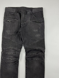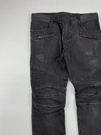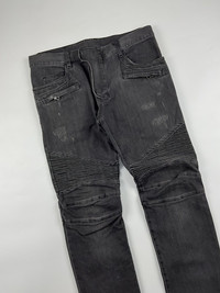 Balmain Distressed Biker Jeans Sz 32 9/10 Condition Waist: 17 Inseam: 27 Leg Opening: 6.5 Front Rise: 9.7 Thigh: 11 Knee: 8 Measured it by inches Accepting offers No return No exchange Ask before buy