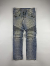 Balmain x Christophe Decarnin S/S’11 Biker Denim Sz 31 9/10 Condition Missing eagle coin Waist: 16 Inseam: 30 Leg Opening: 7 Front Rise: 9.2 Thigh: 11.5 Knee: 8 Measured it by inches Accepting offers No return No exchange Ask before buy