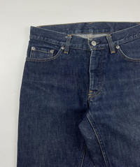 Helmut Lang 1998 Classic Raw Denim Classic Cut Sz 28 9/10 Condition Waist: 14.5 Inseam: 30.5 Leg Opening: 7.5 Front Rise: 9 Thigh: 11 Knee: 8 Measured it by inches Accepting offers No return No exchange Ask before buy